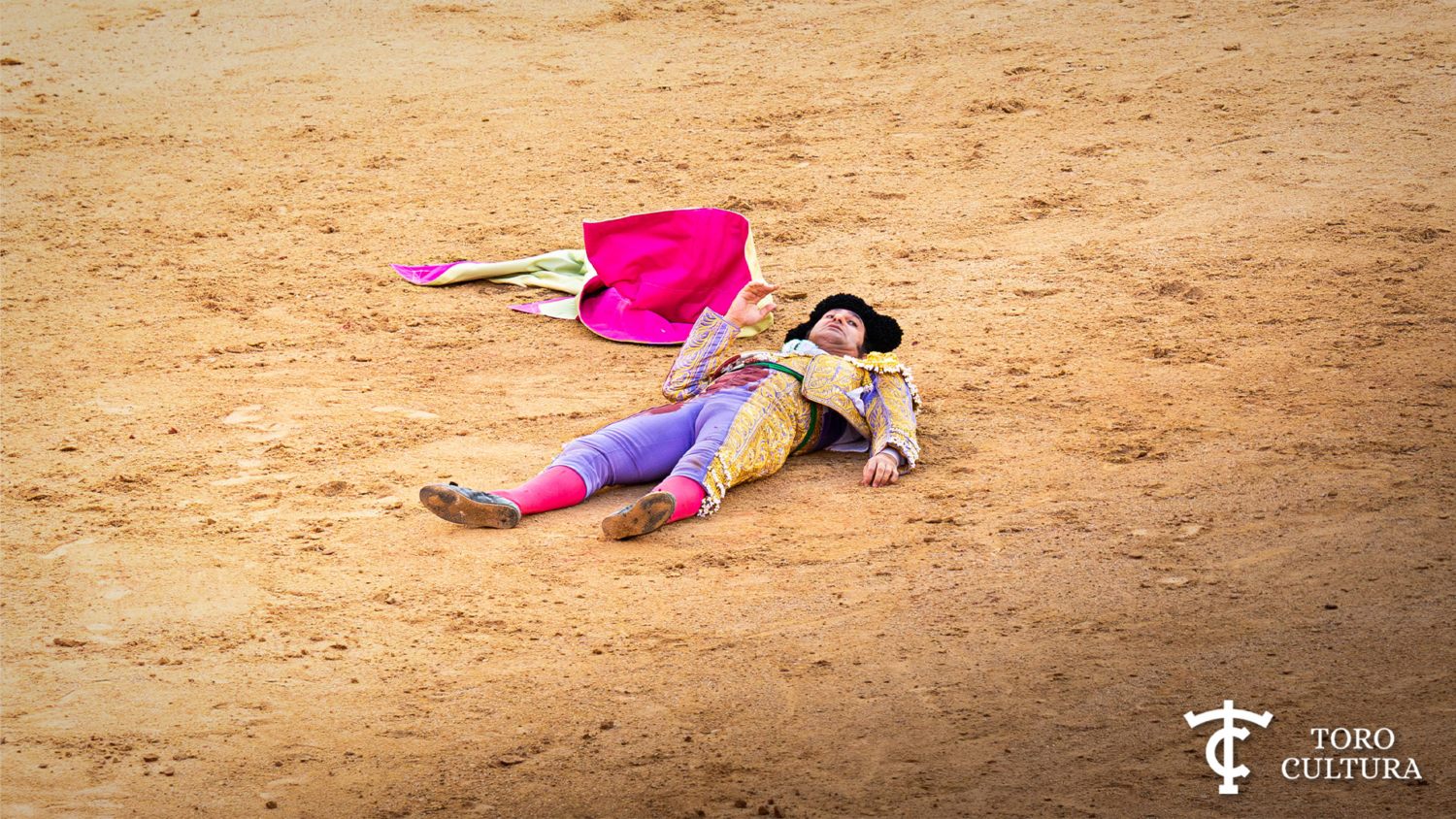 Morante yacía sobre el albero en el platillo de Las Ventas boca arriba, inmóvil, solo en la inmensidad del mar de arena, vestido de Chenel y oro. Movió los ojos como implorando ayuda y acertó a levantar torpemente la mano derecha. Seguía solo, con la espalda pegada a la tierra, derrotado junto al capote de vueltas verdes arrebuñado a un metro. Tripulante, un imponente toro de Garcigrande acababa de prenderlo y lanzarlo hacia el arriba para caer sobre las cervicales en una mala torsión del cuello, con una negra mancha de sangre en el vientre. Fueron los lances de recibo ejecutados por chicuelinas que iba a rematar con una verónica los que propiciaron la cogida de mal presagio. Parecía estar herido en los intestinos, lesionado severamente en la médula, o las dos cosas a la vez. Tardaron las asistencias en abrazarlo desmadejado, alzarlo y correrlo hasta un burladero junto al que lo pusieron en pie tambaleante. Pidió agua para el cuello e intentó un paso que fue vacilante y desequilibrado. Se tapó tras la barrera y ordenó que continuara la lidia de su segundo toro. Con la asistencia de su apoderado, médico dentista, y de su cuadrilla recobró la orientación en unos pocos minutos, y con la paliza en el cuerpo se fue a por los trastos para inicial la faena. No se demoró en probaturas y al tercer pase ya hervían los tendidos por la pureza de los cites, el temple de las muñecas, la hondura del remate y la verdad de su toreo canónico. Pocas series pero muy profundas. Poco alarde pero mucho valor. De adelante hacia atrás y de arriba hacia abajo, rematando en la cadera, como arcanos de la belleza y secretos del temple. Fue un recital de temeridad discreta e inspiración que no se anuncia porque se siente. Morante, que siempre fue el más artista, es ahora también el más valiente. Y se tiró a matar como un titán, bajando la muleta y hundiendo el estoque en todo lo alto, mirando al morrillo como se mira a la tierra prometida, pasando el fielato de los pitones sin alardes gimnásticos, con elegancia y contundencia a la vez.
